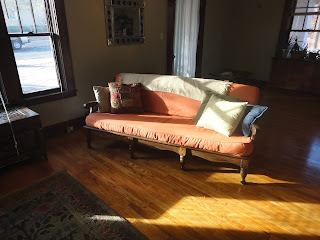 Okay, confession time. I have not acually watched all of those documentaries while working out. Some of them I had on in the background while cutting, pinning and stitching the fabric that finally became my new couch covers. This project was one I completed about a month ago, and it was exceedingly tedious and I am not even proud of the final result, but what the heck. I finally made piped, removable covers for the new foam cushions that are now on the woodframe couch I bought for pennies a mere four years ago! Yay me.